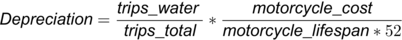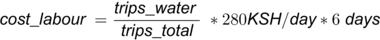 We use straight line depreciation for the boda boda vendor’s major capital asset – the motorcycle. Similarly, we weight the depreciation cost by the proportion of trips for transporting water.